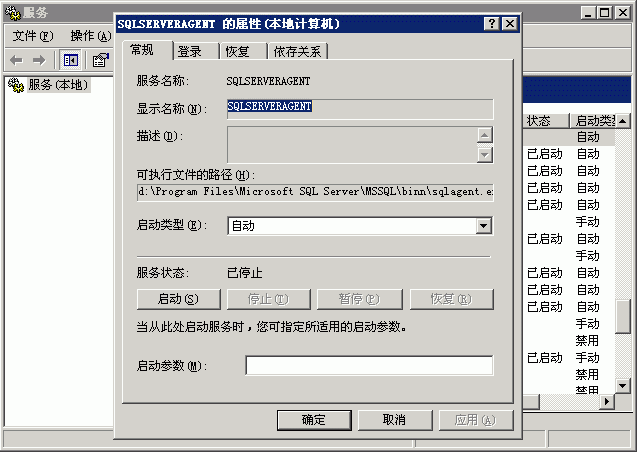 同时将"SQLSERVERAGENT"服务设置为自动启动
