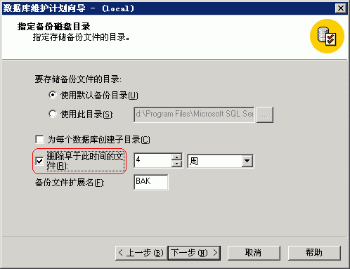 再下一步中建议您勾选“删除早于此时间的文件”,在以下对话框中您可以将“要存储备份文件的目录”勾选"使用此目录"修改到E盘中